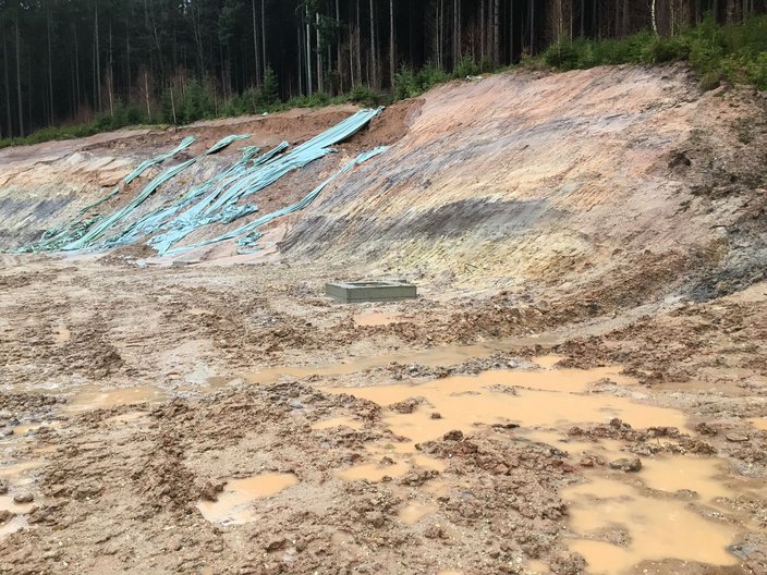 - Hangrutschung (siehe Bild) wird, sobald es die Wetterbedingungen zulassen, beseitigt. Auftrag wurde hierzu schon erteilt.