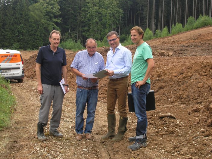 Besichtigungstermin mit Herrn Eichele, dem Geologen und Geometer auf der Baustelle
